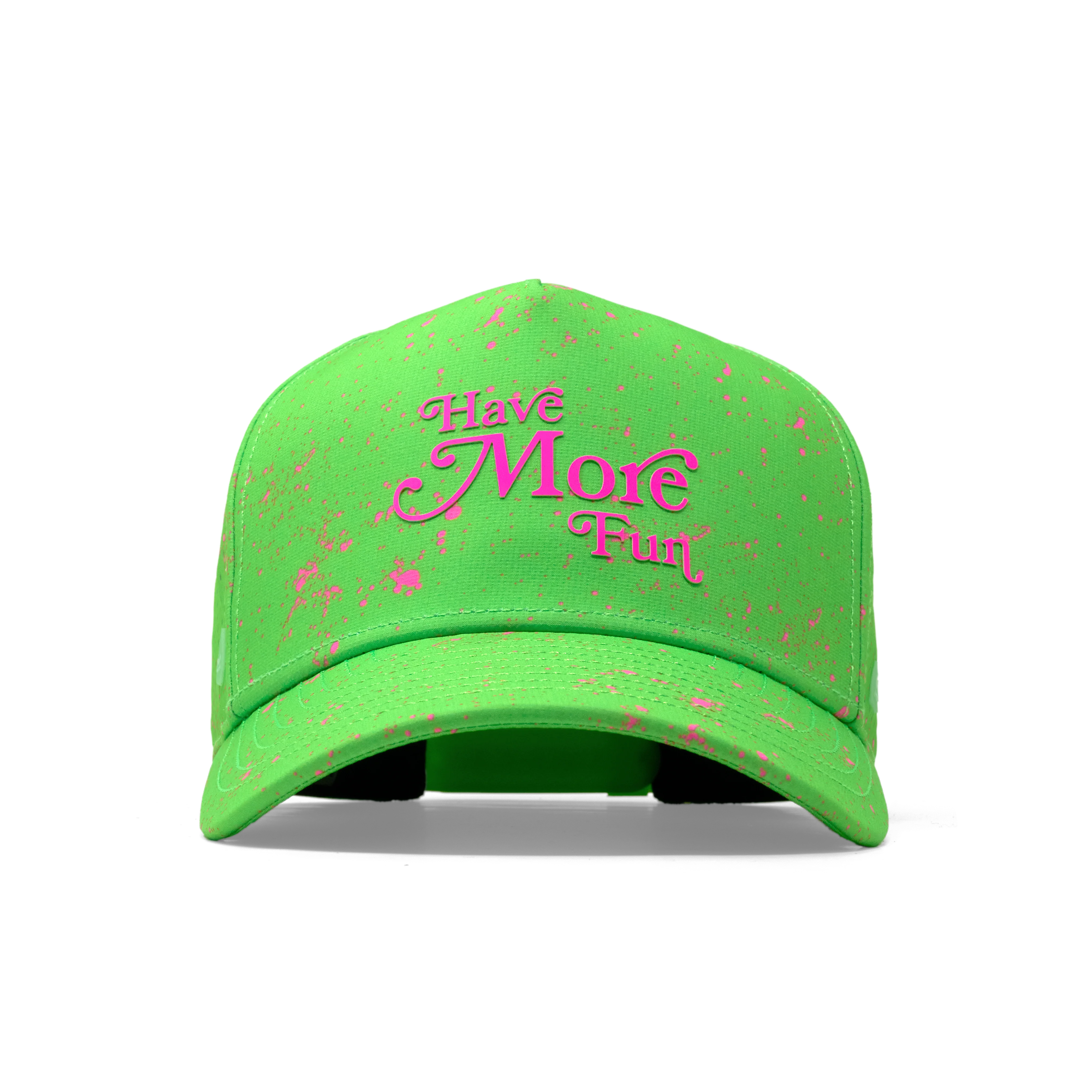 Get ready to light up your next pool party! A vibrant throwback to 90s nostalgia paired with modern performance, the Neon Collection is dripping in eye-catching colors to make you the center of fun on any Summer adventure. Inspired by the art of the drip technique, each hat features a dynamic and lively look with your new Summer motto for all to see. Have More Fun in the most energized collection we offer.